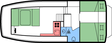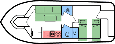 • seitliche vordere Kabine mit 2 Einzel- oder 1 Doppelbett