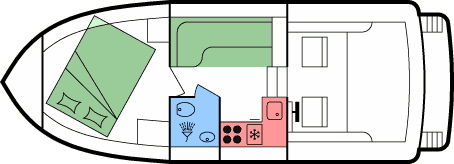 Wir verwenden für die Darstellung der verschiedenen Nutzungsbereiche in den Zeichnungen der Bootsgrundrisse in unseren Katalogen, Preislisten und auf den Internetseiten folgenden "Farbcode".