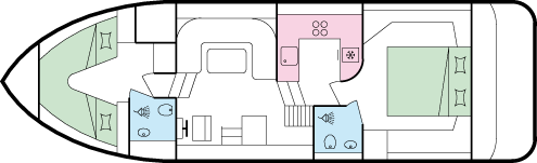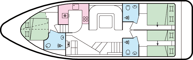 - In den Bug- und den beiden Heckkabinen je ein Doppel- oder zwei Einzelbetten