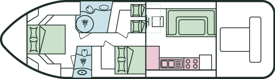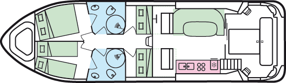 • Doppel- oder 2 Einzelbetten im Bug und mittschiffs